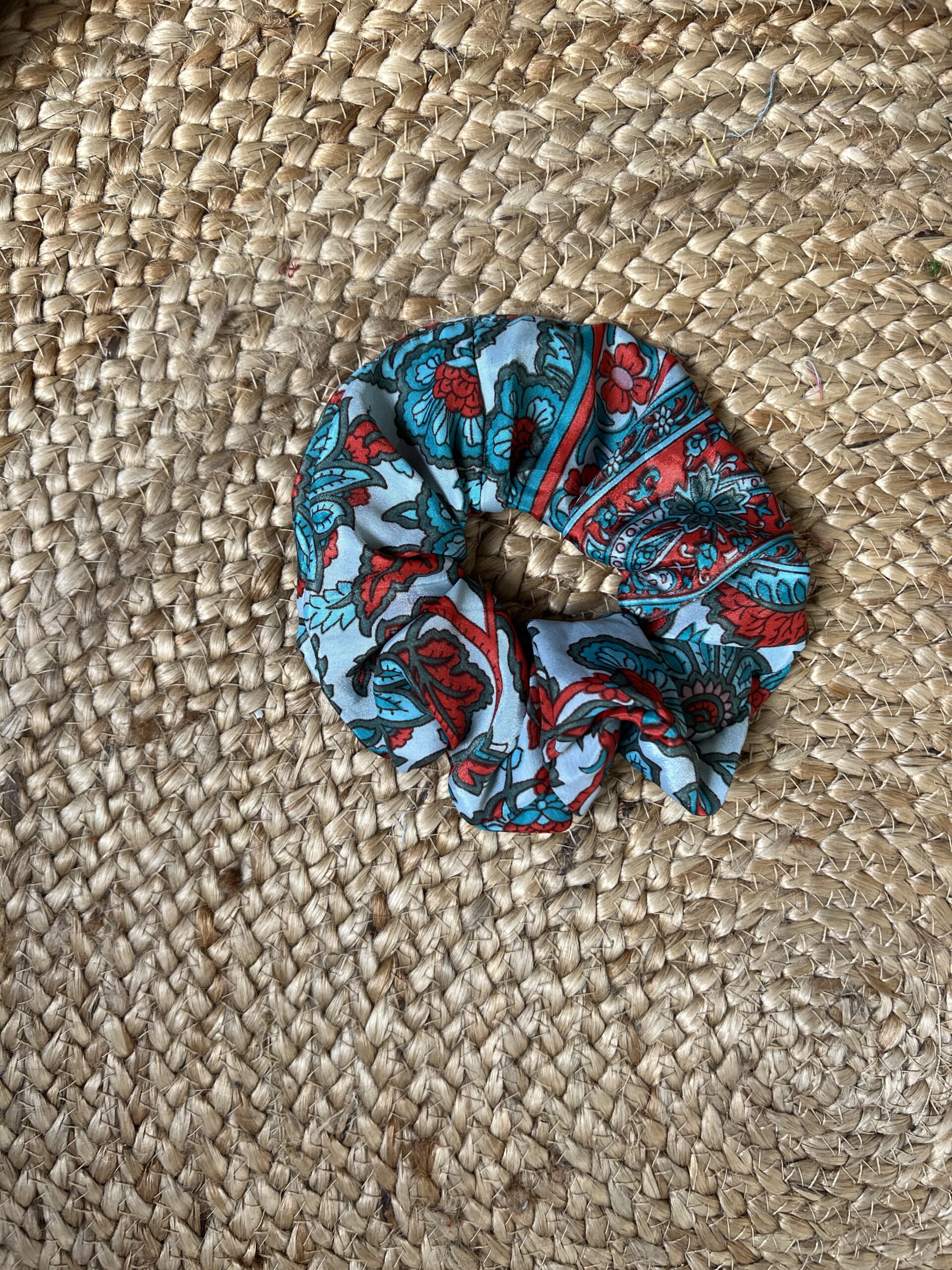 Please note: our scrunchies are made of upcycled vintage saris. These saris have been worn by Indian woman in the past and carry a history. Despite our careful selection of only the best vintage fabrics, small imperfections may occur.